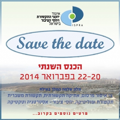 ![]() ![]() ![]() ![]() ![]() איגוד יועצי התקשורת ויחסי הציבור בישראל, יקיים את הכנס המקצועי השנתי באילת – החודש (פברואר 20-22) במלון "המלך שלמה".