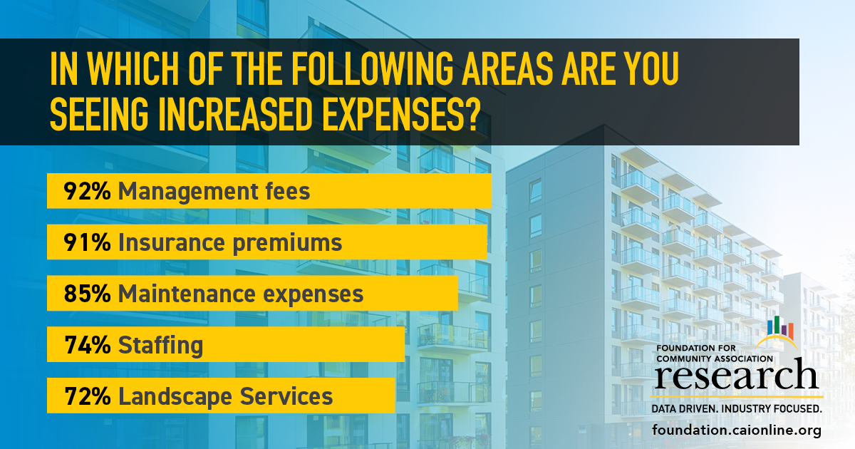 תושבים המתגוררים בבנייני מגורים משותפים, אגודות בעלי בתים וקואופרטיבים לדיור עלולים להתמודד עם הערכות מוגברות לגידול בעלויות התפעול וההוצאות. על פי סקר חדש של הקרן לחקר עמותות קהילתיות - Foundation for Community Association Research, 91% ממנהלי אגודות קהילתיות, אנשי מקצוע ובעלי בתים שהשתתפו בסקר ענו שהם רואים עליות בלתי צפויות בהוצאות עקב עליית עלויות ואינפלציה.